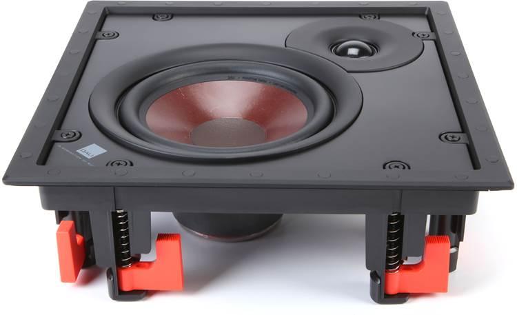 DALI Phantom H – акустичні системи відкритого типу. Тут немає традиційного корпусу, в якому розташована начинка колонки. Усі елементи конструкції встановлені на аркуші МДФ, що має форму квадрата. На лицьовій панелі можна побачити фірмовий коричнево-червоний дифузор НЧ-динаміка та купол твітеру.