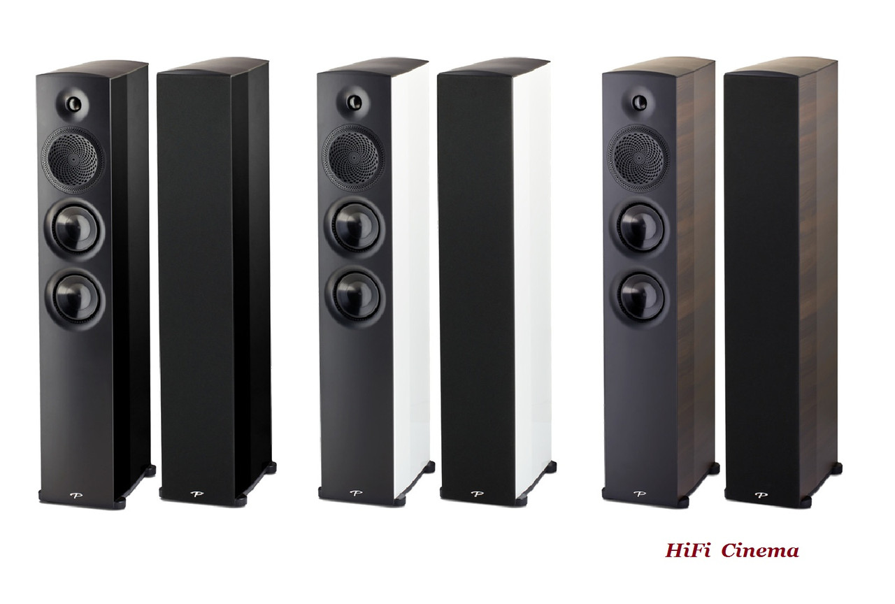 * На фото нижче, зображені підлогові колонки Paradigm Premier 700F в трьох доступних кольорах обробки корпуса: Gloss Black (чорний рояльний лак), Gloss White (білий рояльний лак) і Espresso Grain (зерно еспресо).